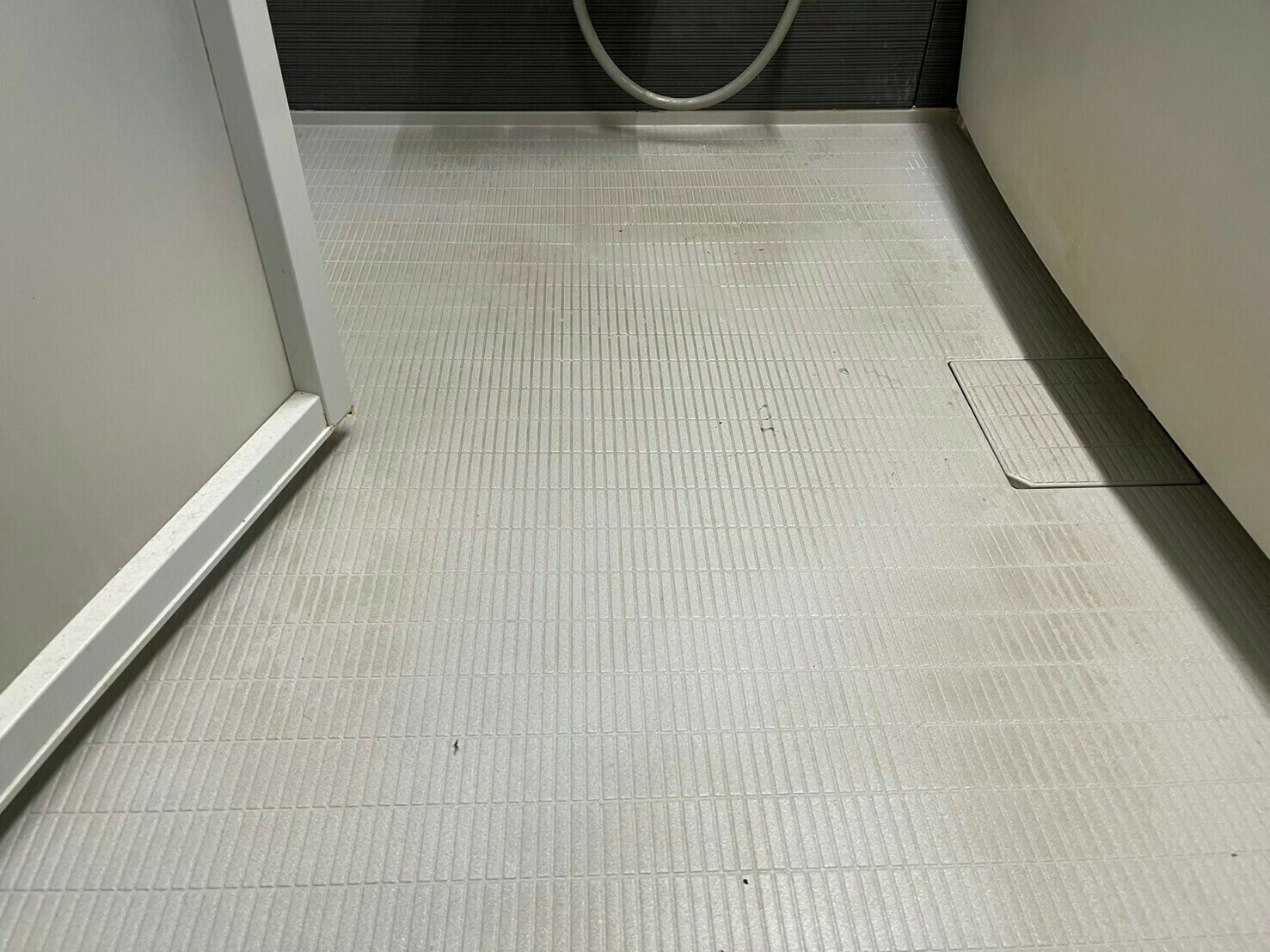 浴室の床は皮脂汚れや石鹼カス汚れにより黒ずんでいます💦