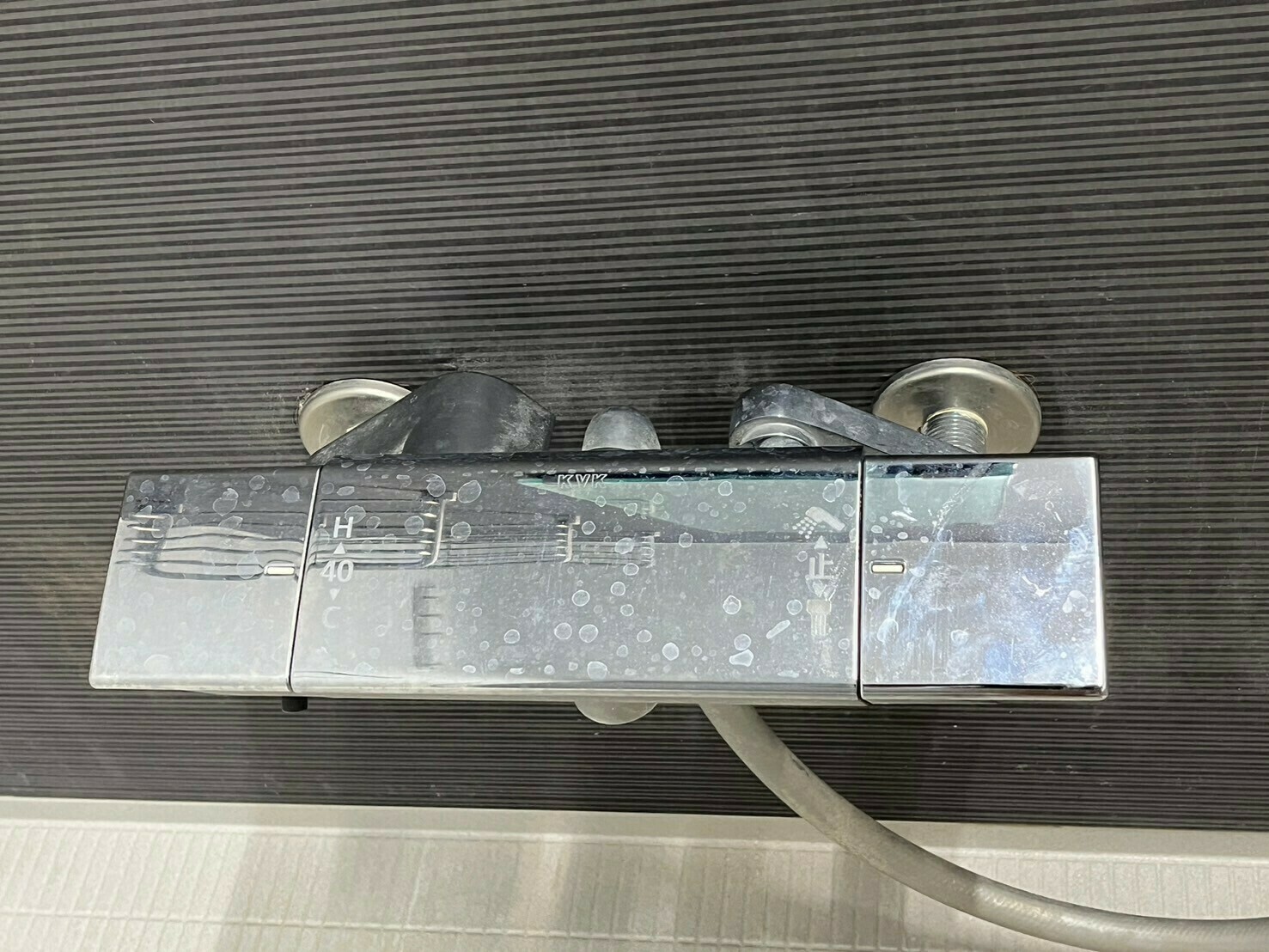 シャワーホースはカルキ汚れで白く汚れています😨