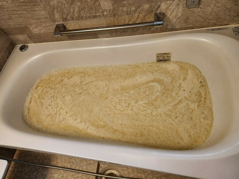 さて、発泡剤を入れて完全に溶け切った後の浴槽内のお湯はどうなったのでしょうか??🙂