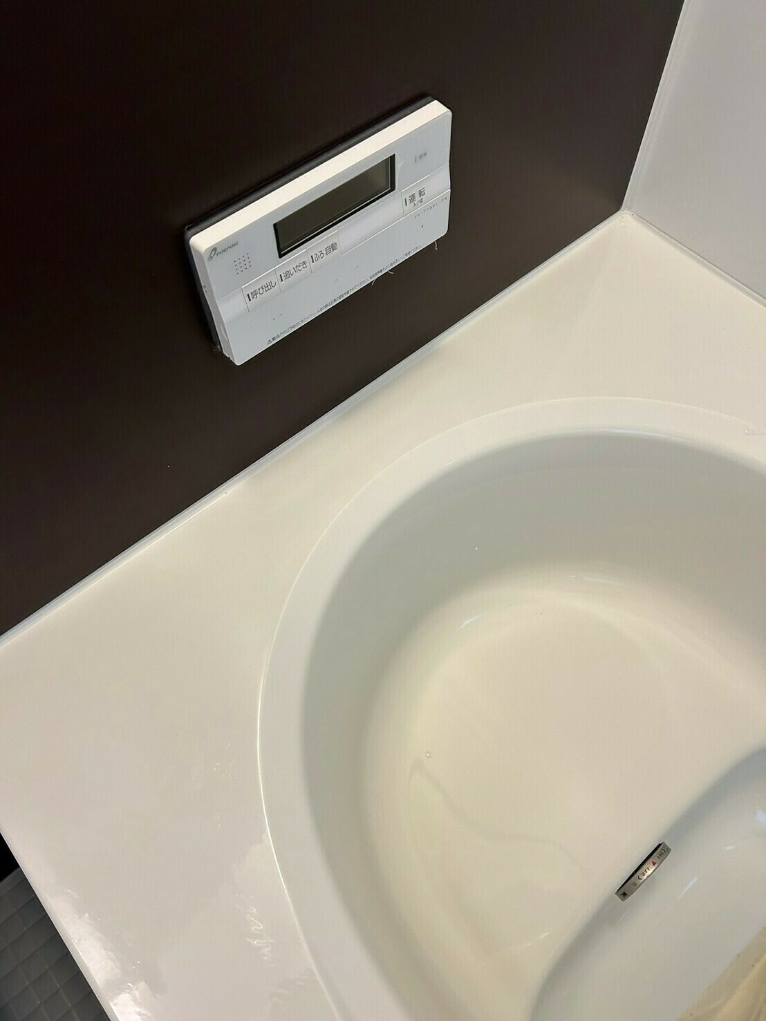浴槽の淵は石鹼カス汚れや、皮脂汚れがついていますね💦