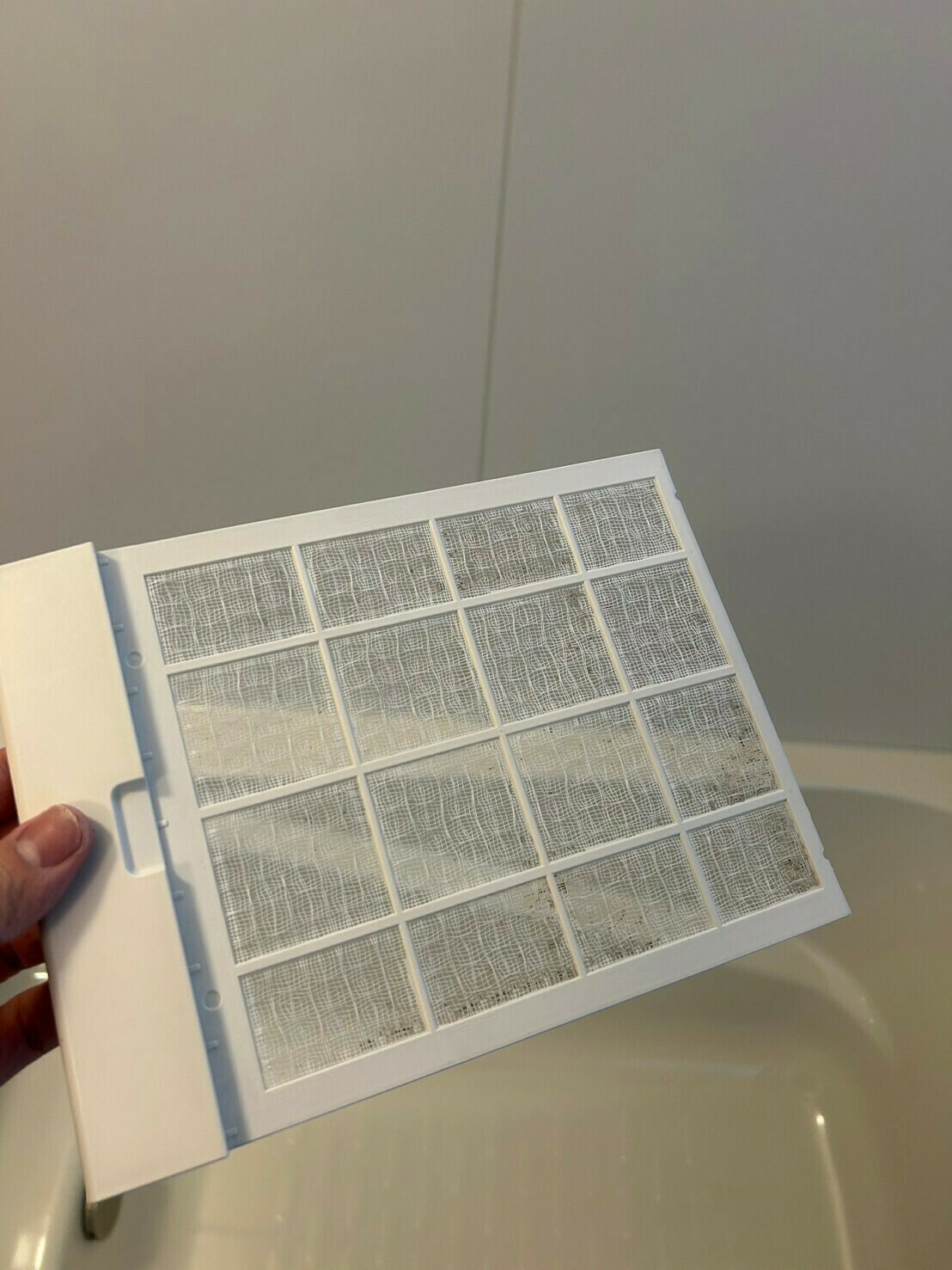落としきれない黒カビ汚れがありましたが、換気扇のフィルターの御覧のとおり、綺麗に埃と黒カビ汚れがを落とすことができました🥰