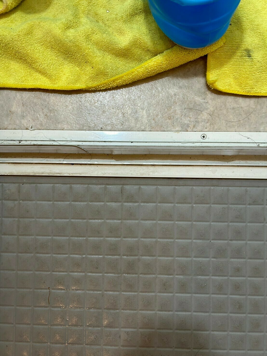浴室と脱衣所の境目の扉のサンには、埃や髪の毛、石鹼カス汚れによるぬめりがついていますね💦