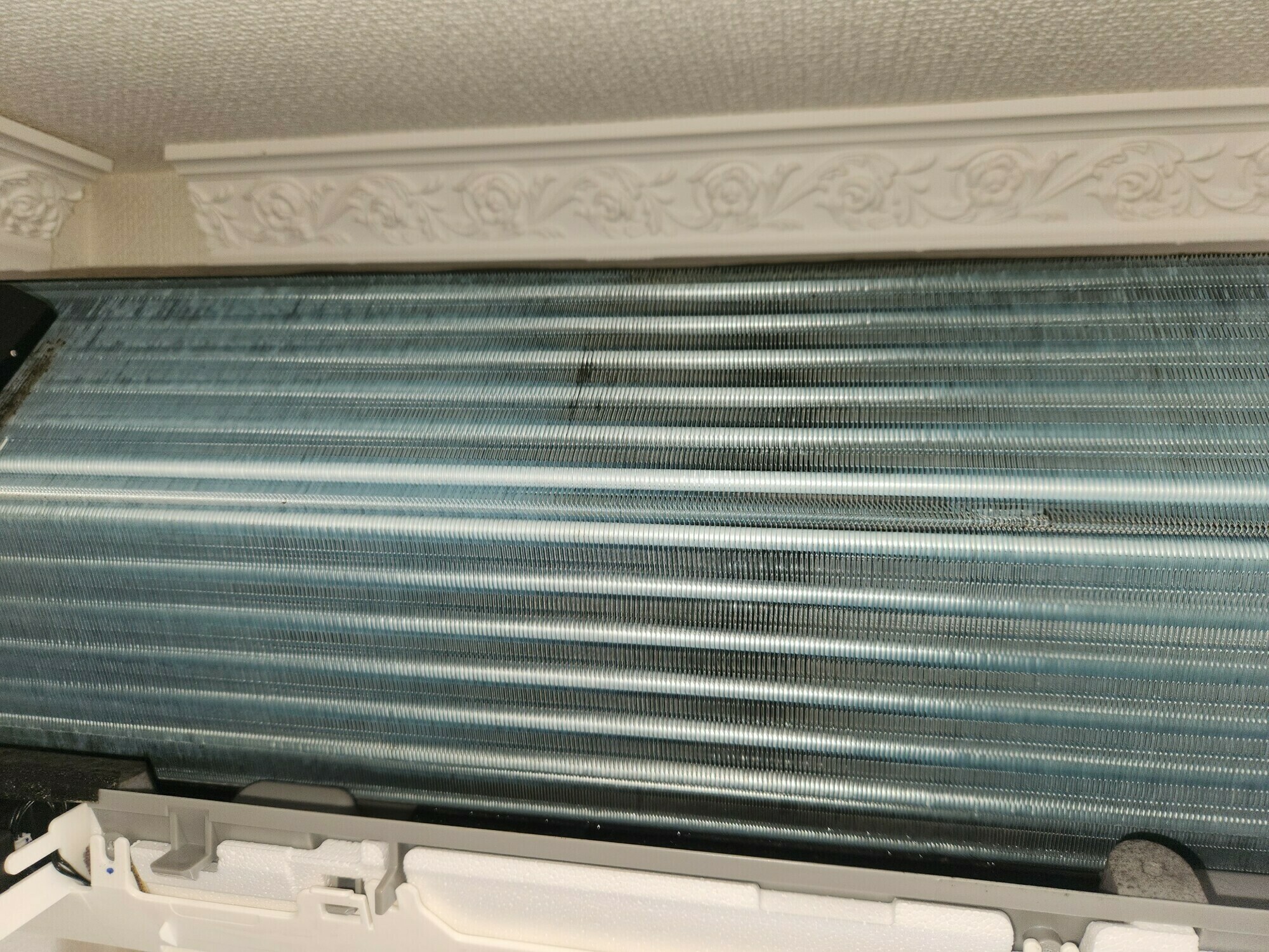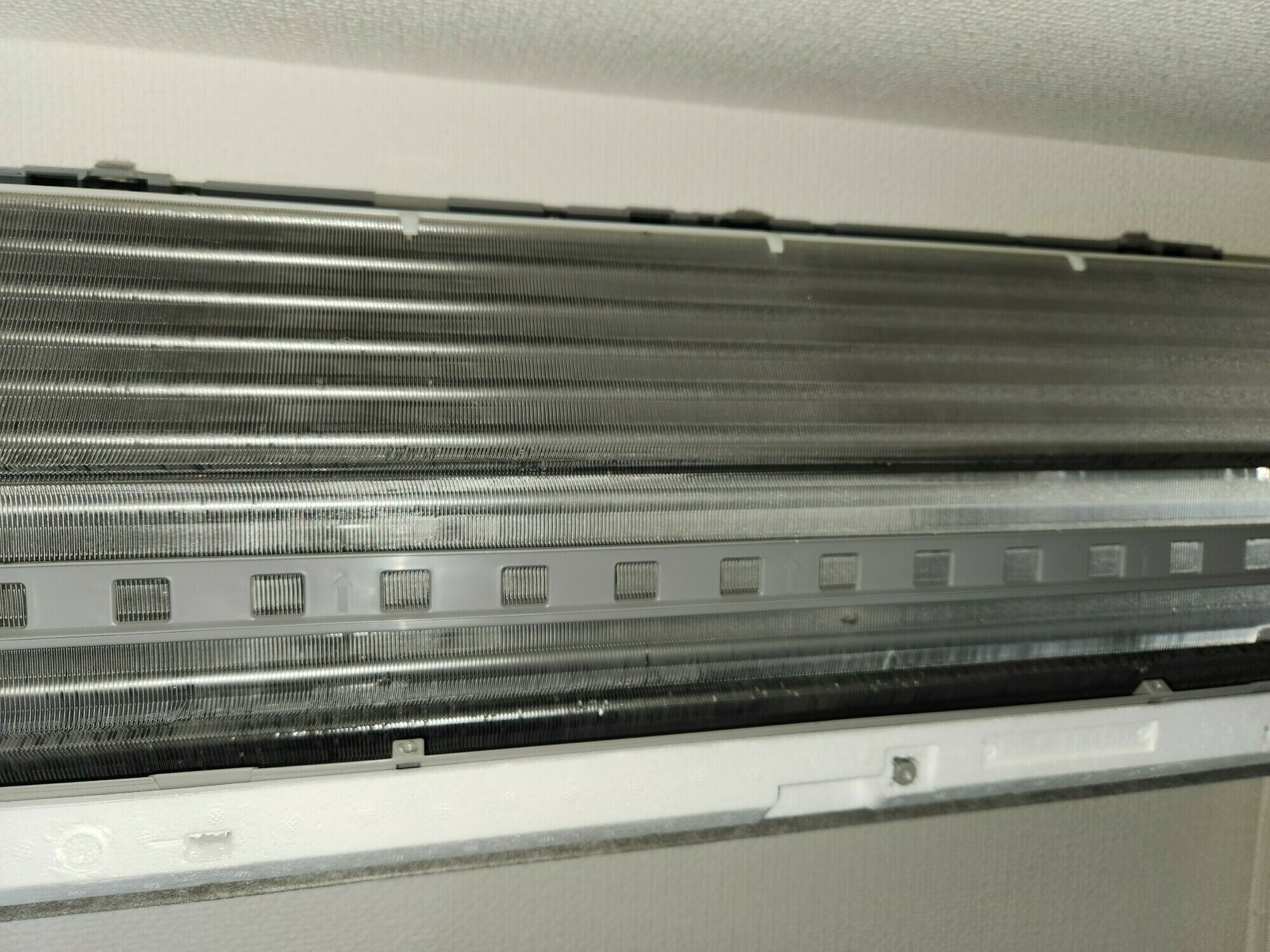 まだアルミフィンの隙間に水が残っているので埃が詰まっているように見えがちではありますが、洗浄で綺麗に落としきることができました😊