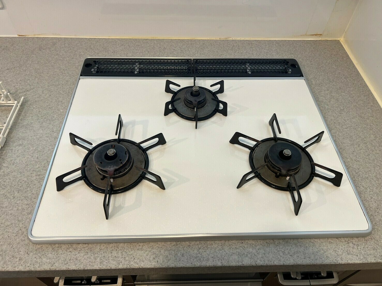 焦げが目立っていた左側のガスコンロは見違えるほど綺麗になり、全体的に白くて美しいガスコンロになりました✨