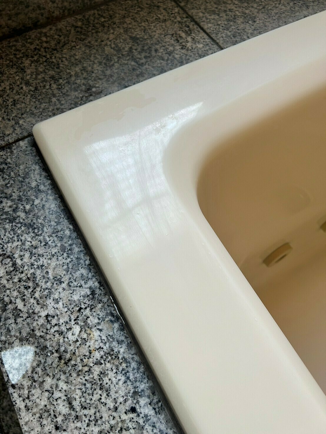 浴槽の淵に目立っていた黒カビや石鹼カス汚れはなくなり、白くてつやっとした綺麗なバスタブになりました😊