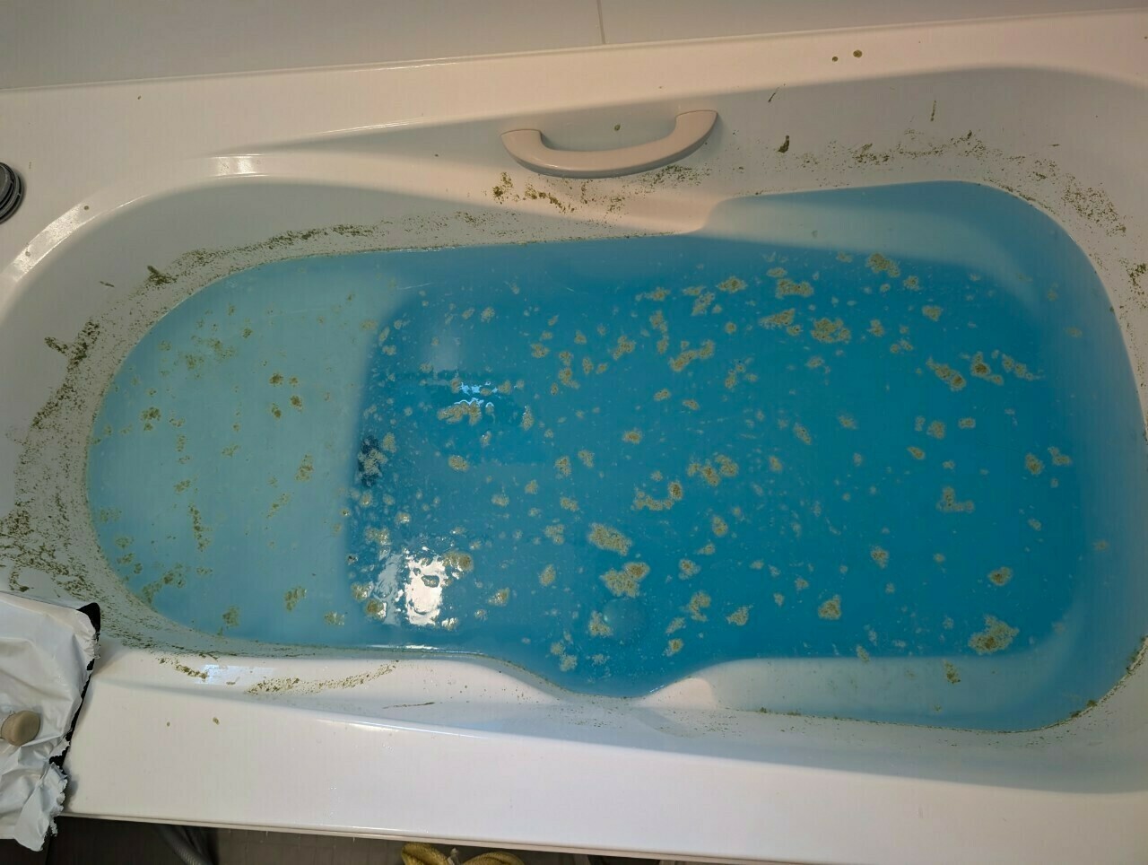 サムネイル画像にもあったこちらのバスタブ内の水が、ヘドロのような汚れでいっぱいになっているかと思いますが、これは何だか分かりますか…?