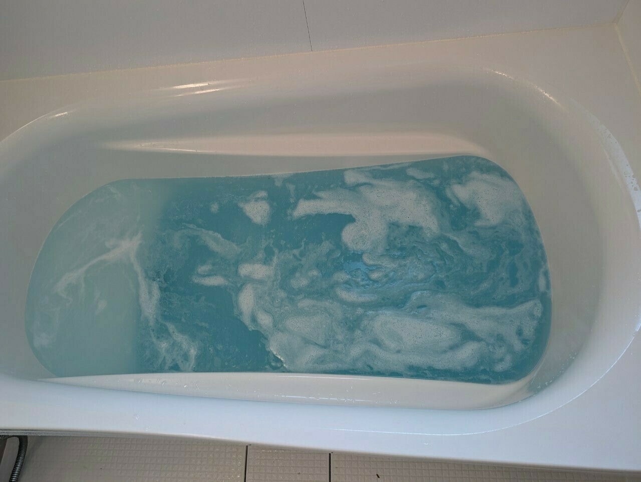 少し時間をおき、バスタブ内の汚水の変化があまり見られなくなり、汚れが完全に湧き出てこなくなったのを確認してから、バスタブ内に溜まった汚れとさよならします。