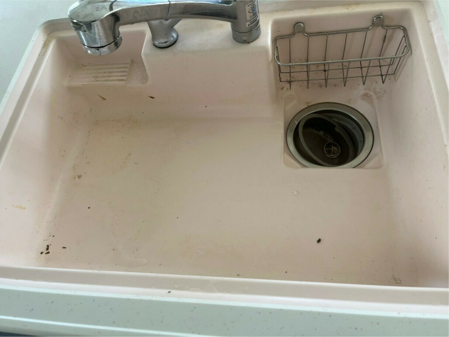 キッチンシンクは食べ物のカスがあったり、黒カビ汚れが発生しています💦