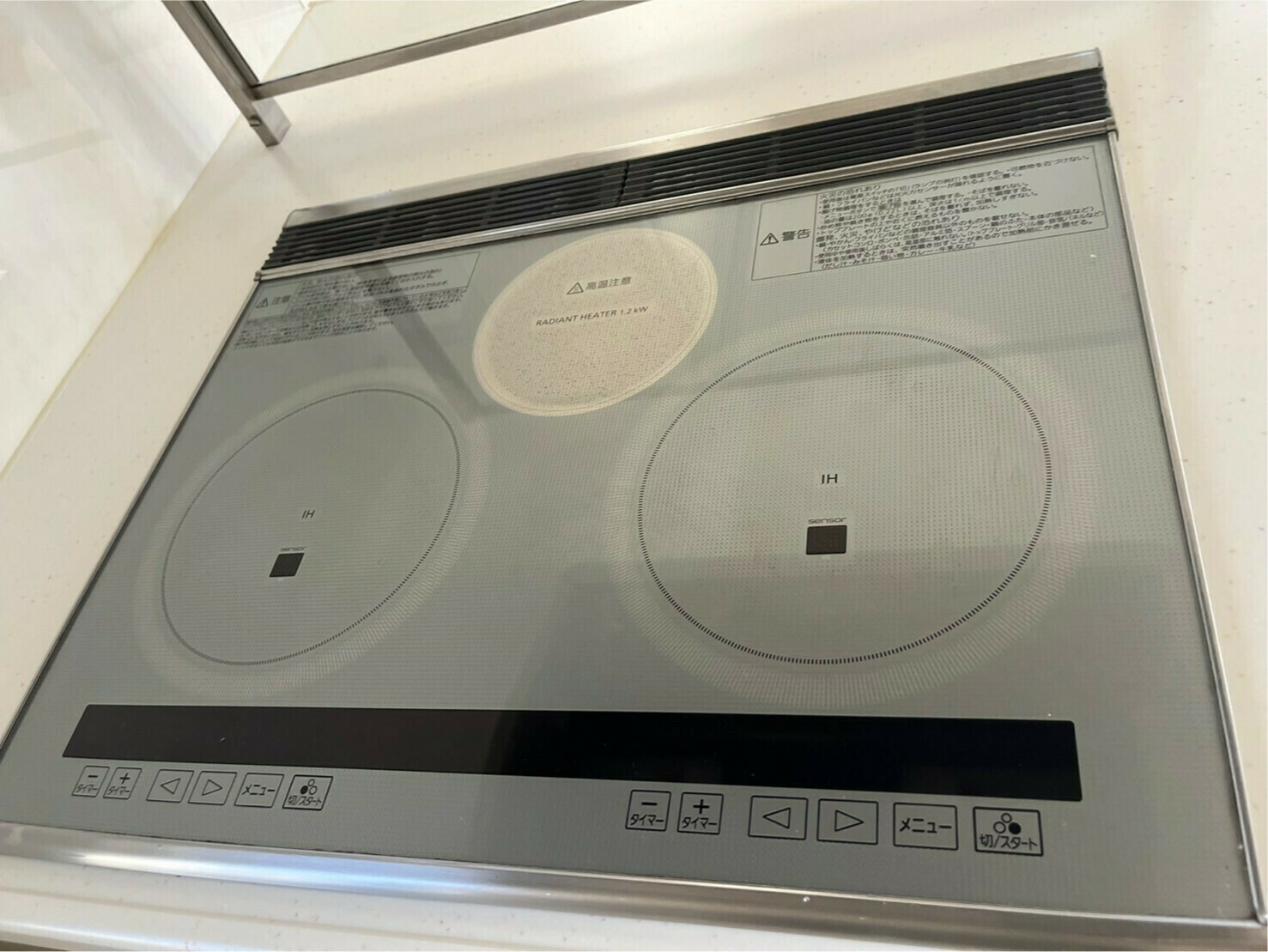 IHのガラストップや、コンロ周りにも油跳ね汚れがちらほらついています💦