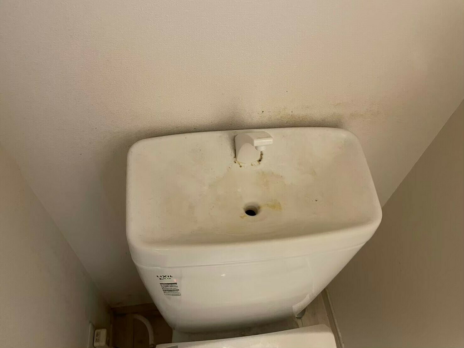 タンク受けは埃だけでなく、水垢汚れがついています💦
