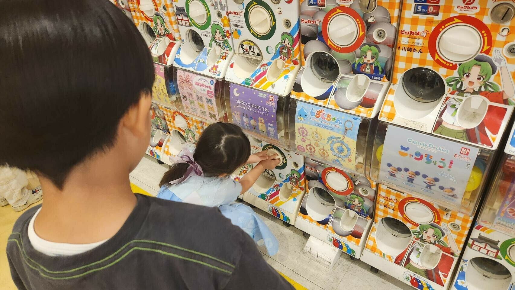 あちらこちらにあったガチャガチャの誘惑には勝つことができず、最後に二人にやらせてあげる事にしました✨