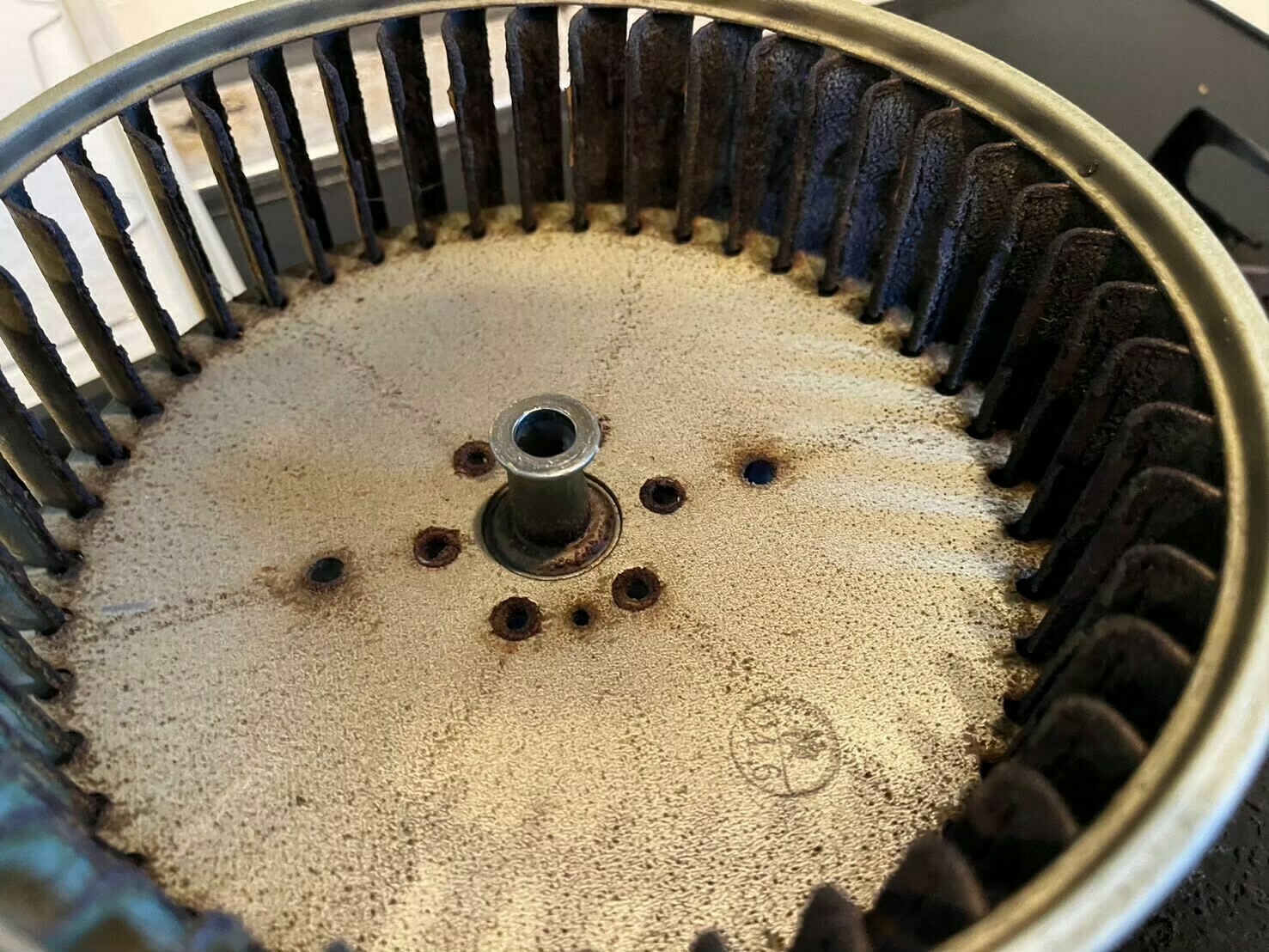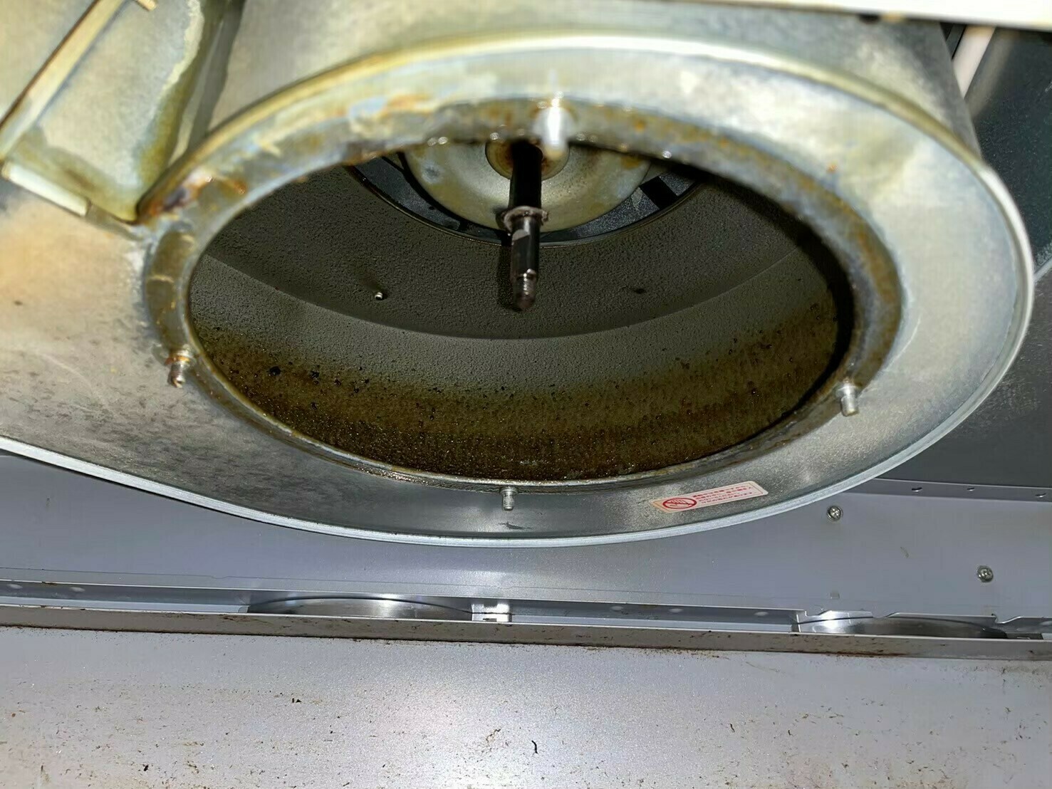 シロッコファンを外した庫内は油汚れが目立っています😵