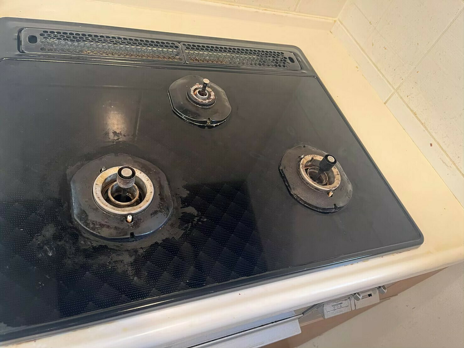 経年の蓄積により、完全に落としきれませんでしたが、ガラストップの油汚れは清掃前よりも落としきることができ、すっきりしています😊