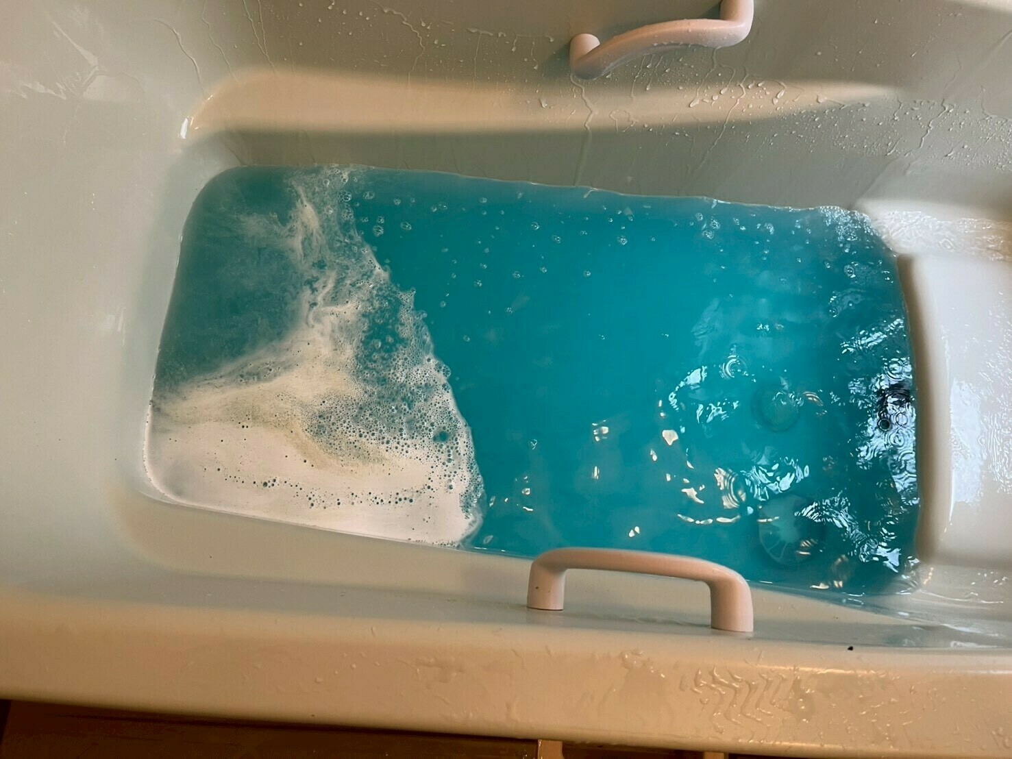サムネイル画像にもあったこちらのバスタブ内の水は、風呂釜配管内についている汚れなのです😱😱