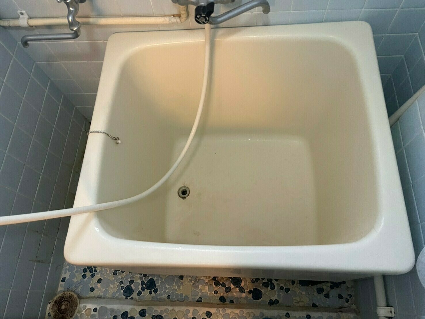 蛇口も同様、ウロコ汚れでジンベイザメ模様の蛇口になっています😵