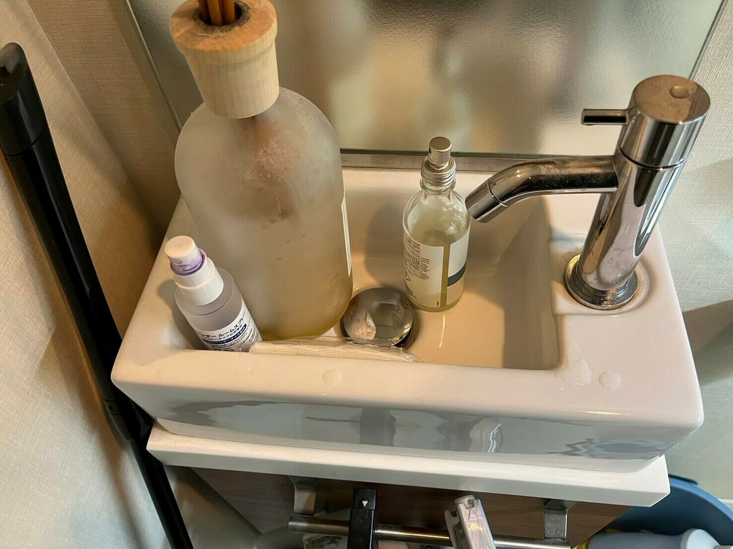 独立洗面台は、蛇口にウロコ汚れがついていますね💦