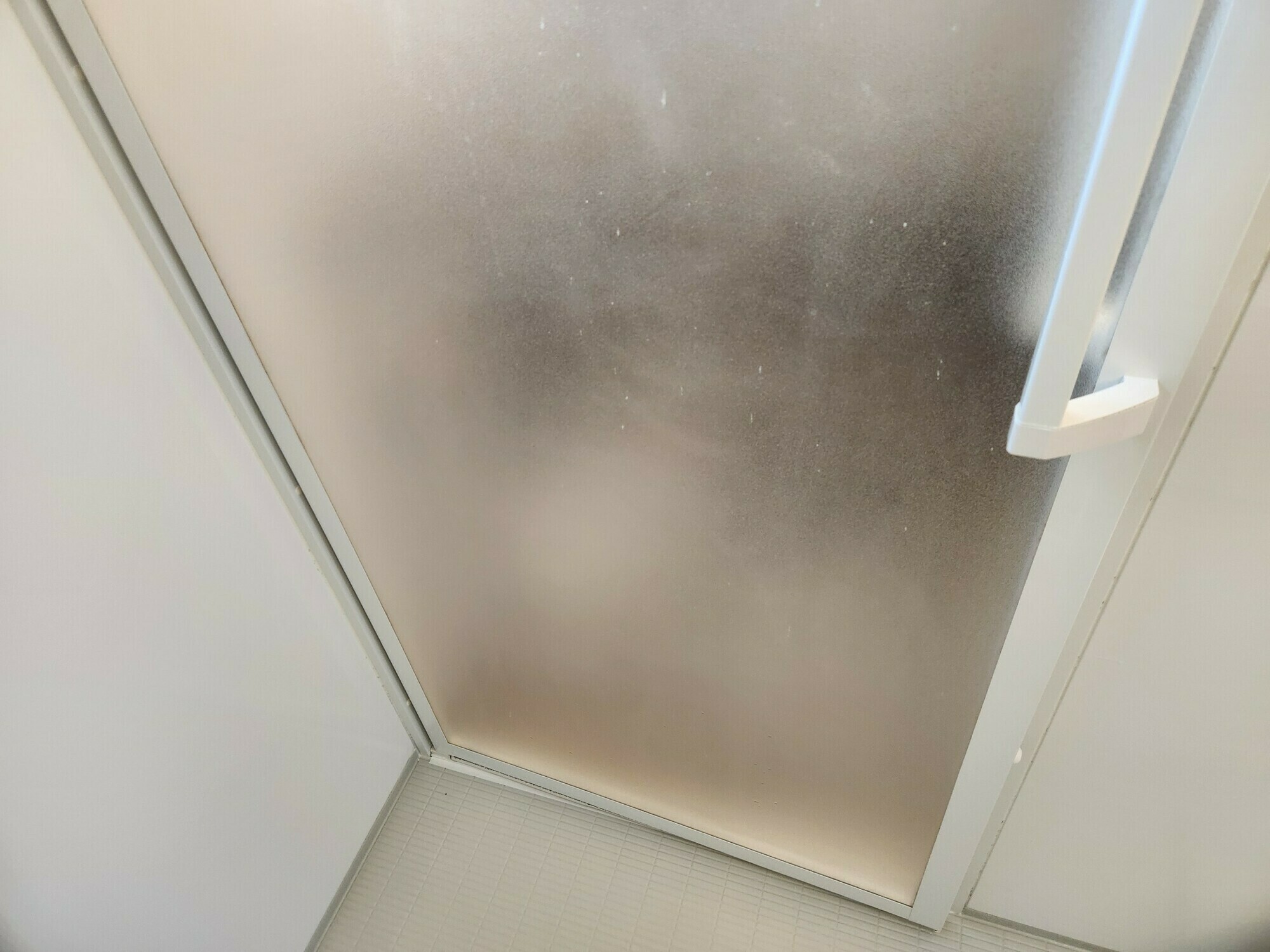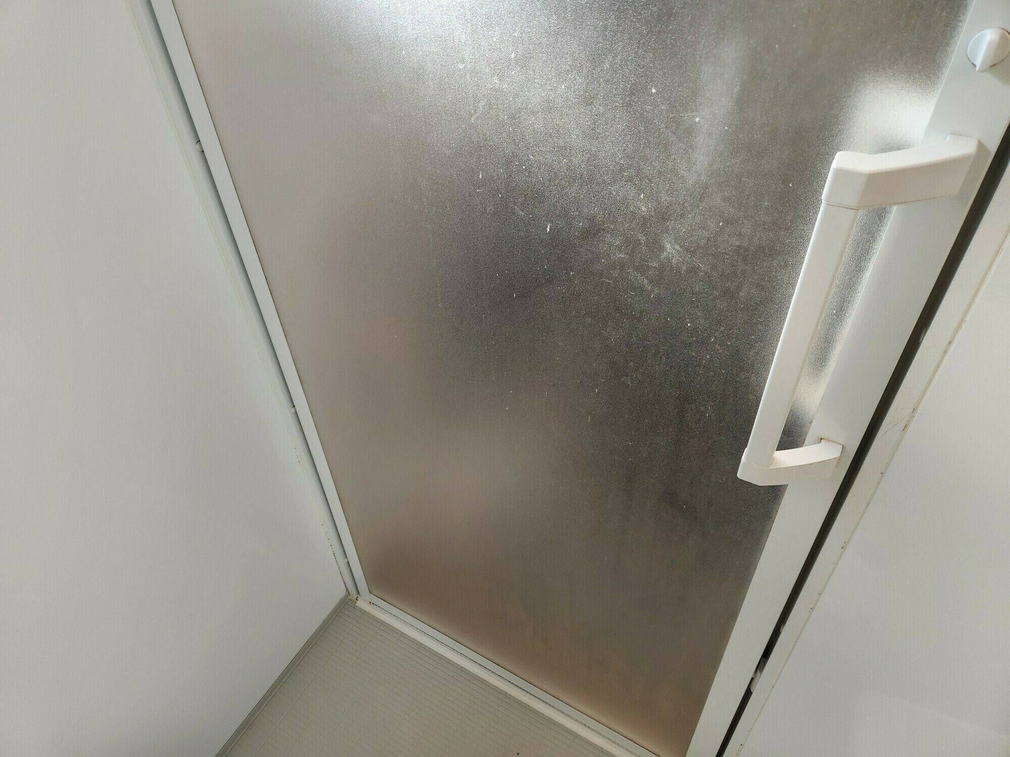 浴室の扉には、石鹼カス汚れがついていますね💦