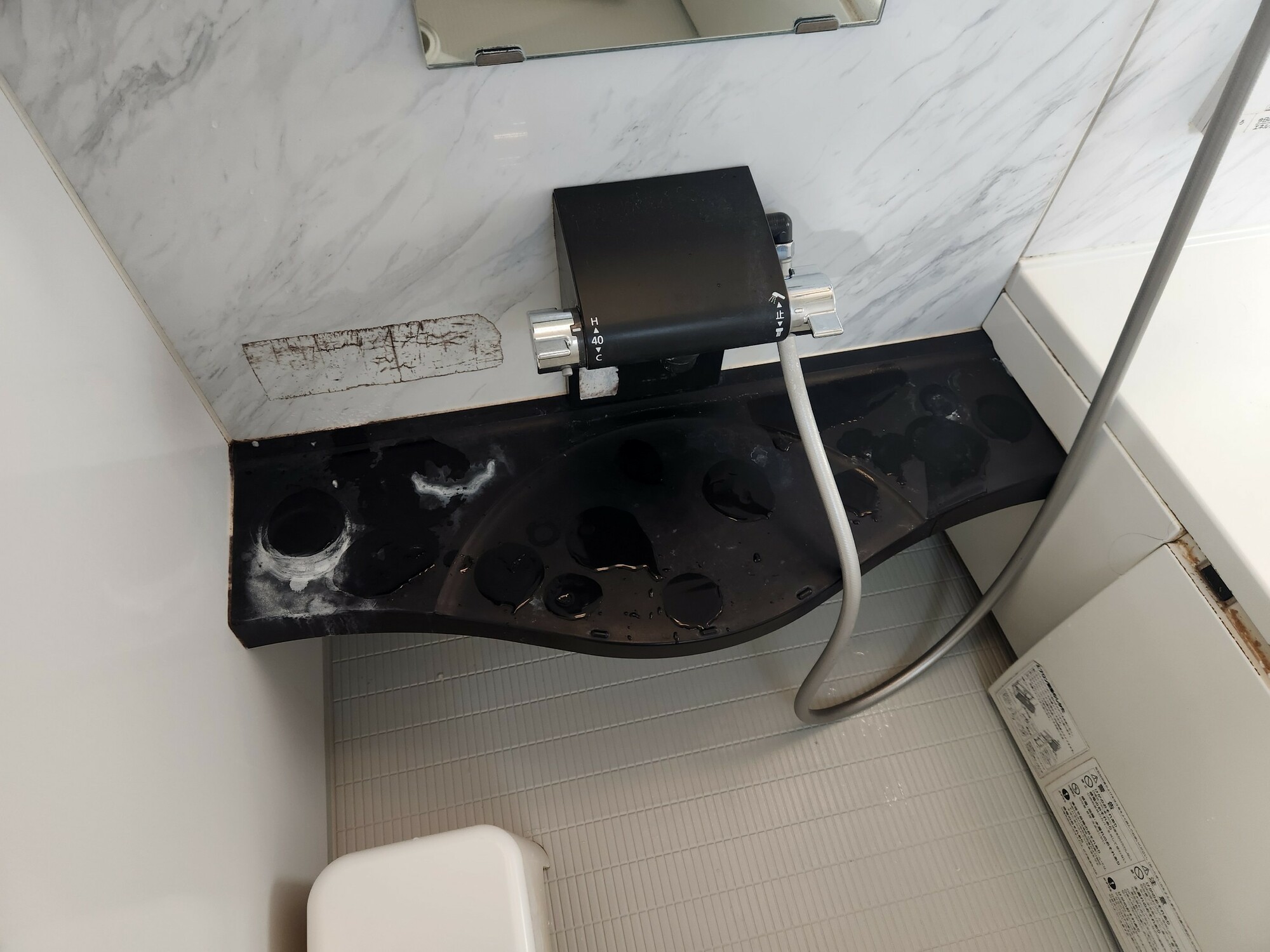 浴室のカウンターには石鹼カス汚れや物を置いていた跡が残っています💦