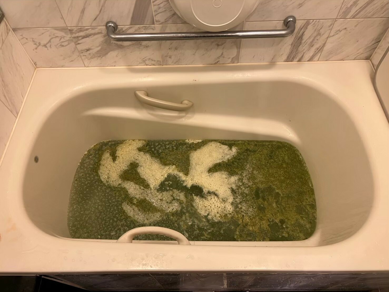 サムネイル画像にもあったこちらのバスタブ内の水は、ヘドロのような汚れでいっぱいになっていますね💦