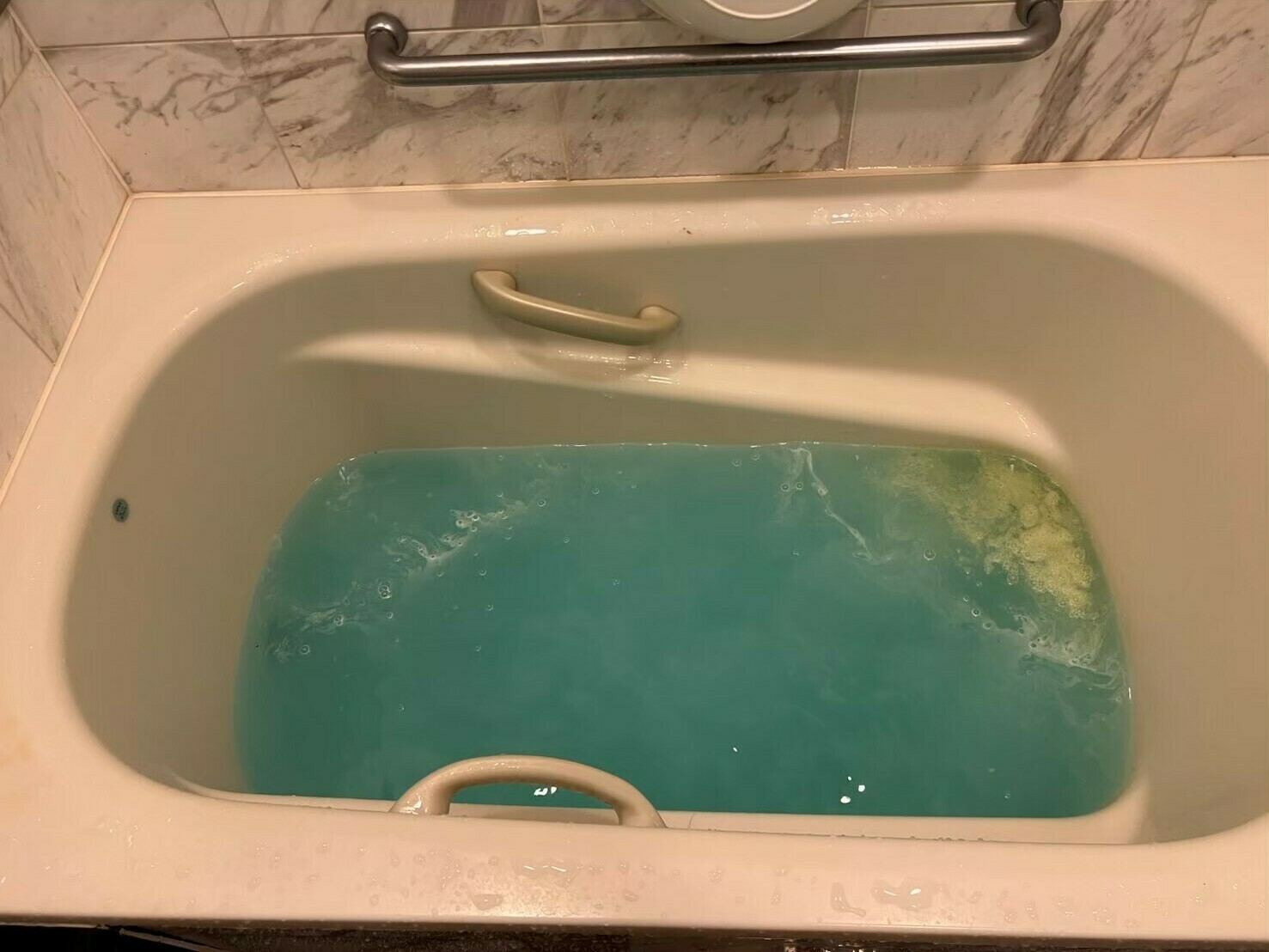 少し時間を置いた後、バスタブ内のお湯を排水して完了です!!